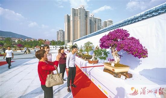 圖為各式盆景吸引市民駐足觀賞。 湄洲日報(bào)記者 陳斌 楊怡玲 攝  莆田網(wǎng)訊 11月8日,第8屆莆田市盆景展暨福建省精品邀請展在南湖公園蓮花廣場開展,展覽將…